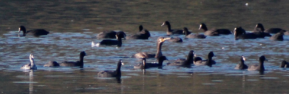 Cette foulque était présente parmi 186 autres foulques le 17/09/2013; parmi 355 autres foulques le 21/11/2014; parmi 294 autres foulques le 25/09/2015 et parmi 240 foulques environ le 30/10/2016.
